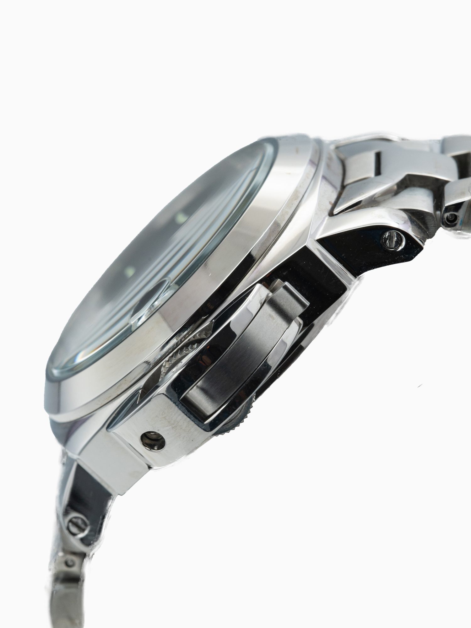 Das Armband der PAM00171, gefertigt aus hochwertigem Edelstahl, ergänzt das Titan-Gehäuse und verleiht der Uhr eine zusätzliche Note von Eleganz. Es ist nicht nur strapazierfähig und langlebig, sondern bietet auch einen hohen Tragekomfort, der es ermöglicht, die Uhr bei jeder Gelegenheit zu tragen.